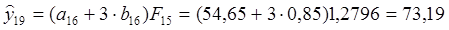 1)Построить адаптивную мультипликативную модель Хольта-Уинтерса с учетом сезонного фактора, приняв параметры сглаживания α1 =0,3, α2 =0,6, α3 =0,3.