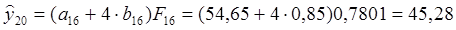 4)Построить точечный прогноз на 4 шага вперед, т.е. на 1 год.