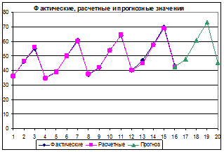 5)Отразить на графике фактические, расчетные и прогнозные данные.