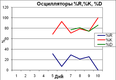 Рис. 2.5 Графики изменения осцилляторов %Rt , %Kt , %Dt .