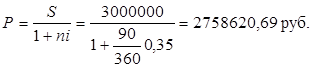 3.2 Через Тдн дней после подписания договора должник уплатил S руб. Кредит выдан под i% годовых (проценты обыкновенные). Какова первоначальная сумма и дисконт?