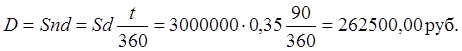 Ответ: предприятие получило 2737500,00 руб., дисконт составил 262500,00 руб.