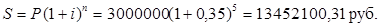 3.4 В кредитном договоре на сумму S руб. и сроком на Тлет лет, зафиксирована ставка сложных процентов, равная i% годовых. Определить наращенную сумму.