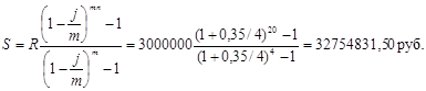 3.10 В течение Тлет лет на расчетный сет в конце каждого года поступает по S руб., на которые m раз в году начисляются проценты по сложной годовой ставке i%. Определить сумму на расчетном счете к концу указанного срока.