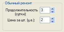 Для того чтобы задать продолжительность и стоимость обычного ремонта, на соответствующей панели области ввода данных нажимайте с помощью мыши на стрелочки "вверх" или "вниз" в зависимости от того хотите вы увеличить или уменьшить количество дней/стоимость.