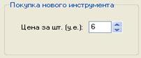 Для того чтобы задать стоимость покупки нового инструмента, на соответствующей панели области ввода данных нажимайте с помощью мыши на стрелочки "вверх" или "вниз" в зависимости от того хотите вы увеличить или уменьшить стоимость.