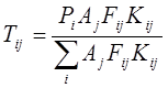 Основное предположение, используемое в методе Фратера, состоит в том, что количество поездок из i -той зоны в j -ю для некоторого будущего момента времени пропорционально исходному числу всех выездок из i -той зоны, умноженному на коэффициент развития j -той зоны. Общее соотношение, используемое в методе Фратера, имеет следующий вид: