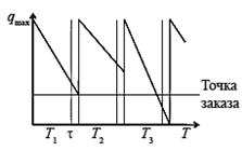 - регулирование запаса осуществляется 1 раз между периодами заказов;