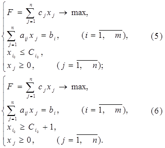 3. Находят решение задач (5) и (6), которые получаются из задачи (1)-(3) в результате присоединения дополнительных ограничений.