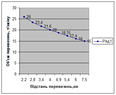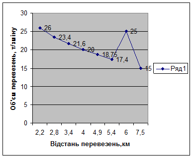 Рис. 4.1. Залежність обсягу виробітку від відстані перевезення