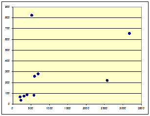 Расчет средней ошибки аппроксимации (А = 56,25 %), а также анализ при помощи критерия Фишера показал, что полученное уравнение регрессии также не соответствует реальной зависимости (в силу большой доли неучтенных в зависимости параметров).