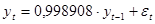 предыдущем значении ряда в модели равен 0,9994, то есть, почти единице, что свидетельствует о возможном характере случайного блуждания процесса.