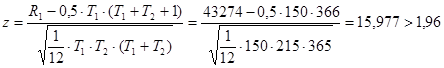 R1 = 26982 – сумма рангов, присвоенных элементам из первой части ряда