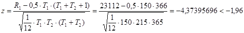 R1 = 43274 – сумма рангов, присвоенных элементам из первой части ряда