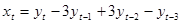 Поскольку наилучшим образом ряд описан полиномом третьей степени, в качестве преобразования исходного ряда следует избрать третьи конечные разности: