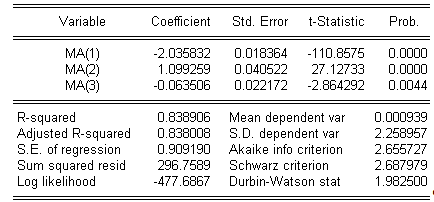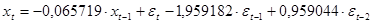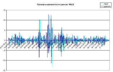 Подобный вид автокорреляционной и частной автокорреляционной функций (таблица 5) характерен для моделей скользящего среднего второго порядка.