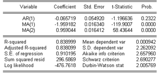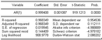 Если для исходного ряда построить модель АR(1), то будут получены результаты, представленные в таблице 3.
