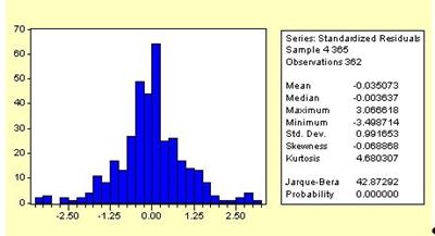 статистически незначим при уровне значимости не превышающем 0,7321). Поскольку модели MA(2)ARCH(5) и MA(2)ARCH(7), в целом, похожи, выбрать следует MA(2)ARCH(5), так как она содержит меньшее число регрессоров и значения критериев Акайке и Шварца у неё меньше.
