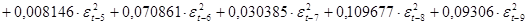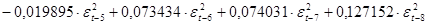 Модель подробно описана в самой курсовой. Значение критерия Акайке 2,322696, а критерия Шварца 2,408699 – то есть они оба меньше, чем для модели MA(2)ARCH(7). Данная модель так же, как и MA(2)ARCH(7), содержит коэффициент, статистическая значимость которого сомнительна (коэффициент при