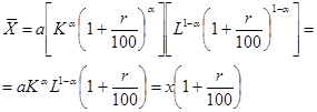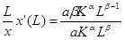 Выпуск продукции x(t) ограничивается производственными возможностями, которые определяются моментом времени t , капиталом K(t), трудовыми ресурсами L(t) и задаются функцией
