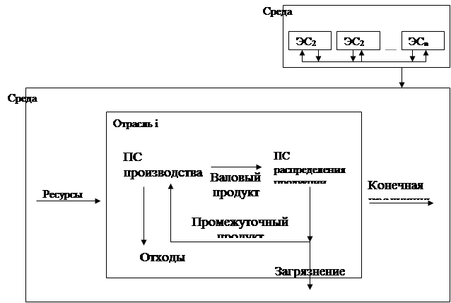 1. Рассмотрим модель экономики, являющейся декомпозицией общей вербальной модели (рис. 8.1). Пусть ПС производства выпускает продукцию только одного вида (так называемая однопродуктовая или односекторная модель)