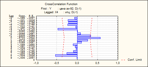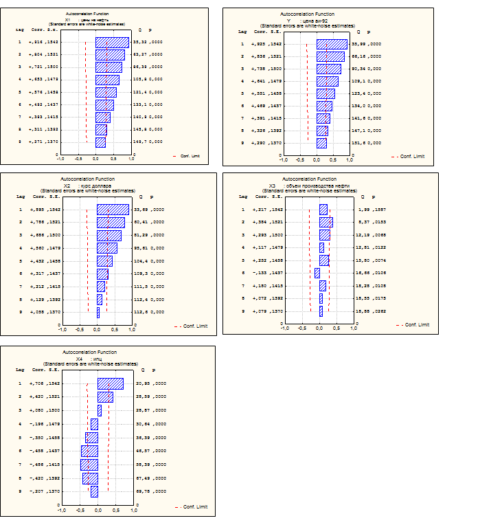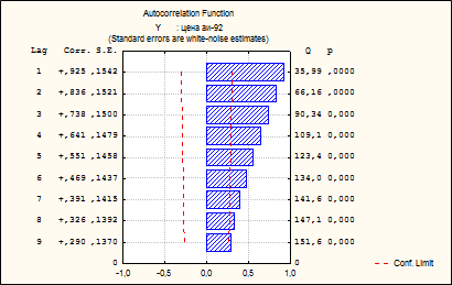 имеет прямую функциональную зависимость от времени, а значит, необходимо проверить его на автокорреляцию уровней временного ряда. Для этого вычисляются коэффициенты автокорреляции. Величина максимального лага определяется по формуле