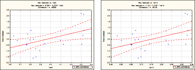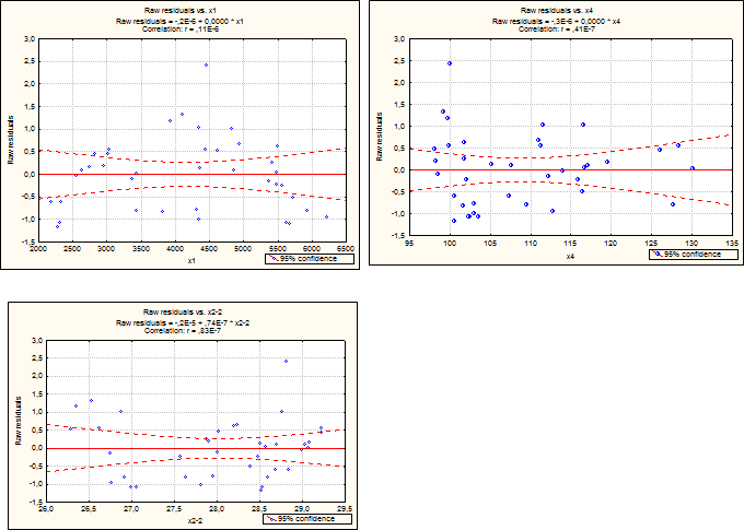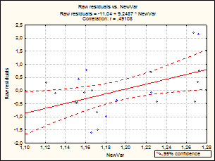 | Regression Summary for Dependent Variable: x4 R= ,23795270 R?= ,05662149 Adjusted R?= ,03112477 F(1,37)=2,2207 p<,14464 Std.Error of estimate: 9,0744 |