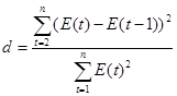 d > 2, преобразуем d' = 4 - d = 4 - 2,20 = 1,80, получили 1,36 < d' = 1,80 < 2. Это означает, что остатки не зависимы.