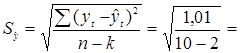 Для числа степеней свободы k = n -2 = 10 - 2 = 8 и уровня значимости a = 0,05 ta = 2,31.