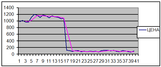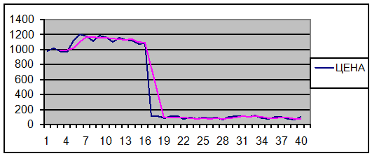ВЫВОД: так как тренд имеет понижающий характер, то цена облигации на следующем аукционе будет ниже последнего значения цены.