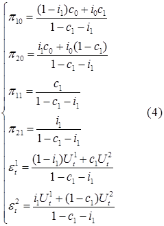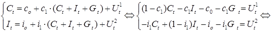 Идентификация модели состоит в нахождении в нахождении по исходным данным оценок коэффициентов модели c0 , с1 , i0 , i1.
