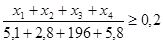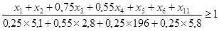 1250х1 + 1300х2 + 1400х3 + 2200х4 ≤5600