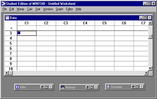Первая из этих трех версий существенно отличается от двух других и имеет большое количество особенностей. Поэтому в дальнейшем при описании возможностей статистического пакета MINITAB эти особенности будут отдельно оговариваться. The Student Edition of MINITAB for Windows - это учебная версия статистического пакета MINITAB, разработанная для студентов, изучающих различные экономико-математические дисциплины.