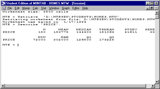 - The Student Edition of MINITAB for Windows;