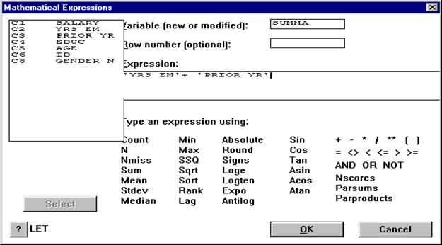 Числовые колонки могут содержать знак - "*". "Звездочка" означает, что при вводе было пропущено одно из значений, либо она возникла как результат неправильного выполненного или невозможного арифметического действия. При наличии "*" в колонках с данными некоторые виды расчетов (например, дисперсионный и регрессионный анализы, вычисление коэффициента корреляции и некоторые другие расчеты) MINITAB не производит.