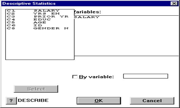 13. Каким образом осуществляется получение описательной статистики для данных, находящихся в колонках пакета Minitab?
