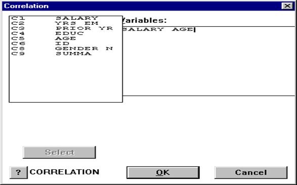 15. Каким образом осуществляется получение коэффициента корреляции в пакете Minitab?