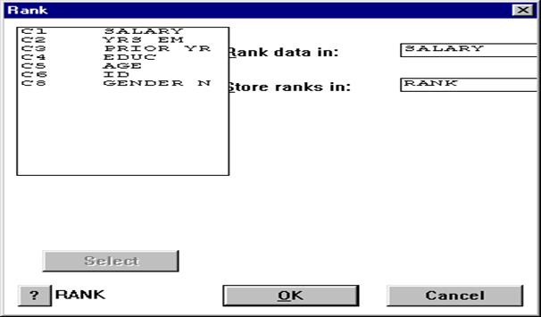 12. Каким образом осуществляется ранжирование и сортировка данных в пакете Minitab?