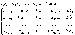 Функция (1.1) называется целевой функцией. Система (1.2) называется системой ограничений, а условие (1.3) – условием неотрицательности.