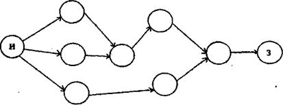 · фиктивной, т.е. формально не требующей затрат времени и представляющей связь между какими-либо работами (передача измененных чертежей от конструкторов к технологам, сдача отчета о технико-экономических показателях работы цеха вышестоящему подразделению).