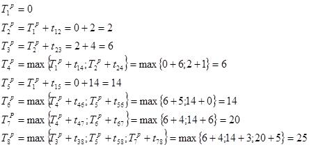 Ранние сроки определяются величиной наиболее длительного отрезка пути от исходного события до рассматриваемого.