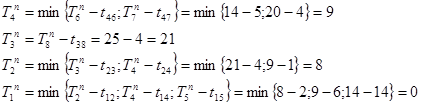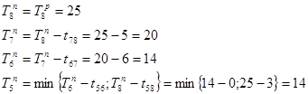Путём последовательного перехода от завершающего события, поздний срок которого равен величине критического пути, рассчитывают поздний срок