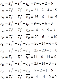 Разность между поздним и ранним сроками свершения событий – есть резерв времени этого события. Резерв времени i-го события