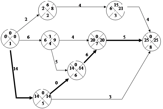 Наиболее простым и наглядным методом расчёта параметров сети является графический. Кружки-события заполняются в следующем порядке: