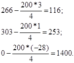 1 * 92 + 3 * 0 + 4 * 27 + 0 = 200
