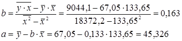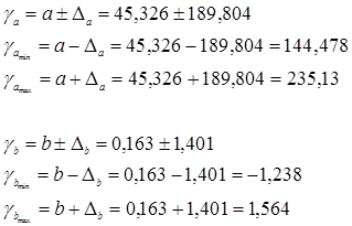 Рассчитаем доверительный интервал для a и b. Для этого определим предельную ошибку для каждого показателя: