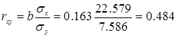 Линейный коэффициент парной корреляции равен 0,484, следовательно связь изучаемых явлений является умеренной, прямой.