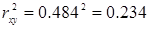 Коэффициент детерминации равен 0,234, т.е. вариация результата на 23,4% объясняется вариацией фактора х.