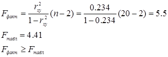3. По данным проведенного корреляционного и регрессионного анализа оценим статистическую значимость уравнения регрессии и его параметров с помощью критериев Фишера и Стьюдента.