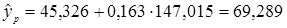 Уравнение регрессии полученное с помощью Excel, имеет вид: